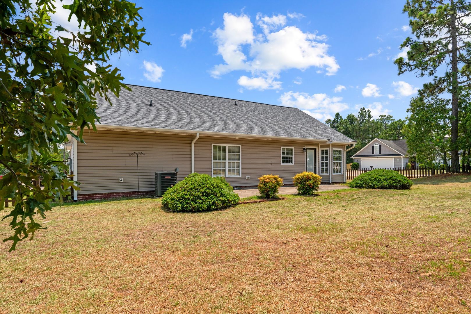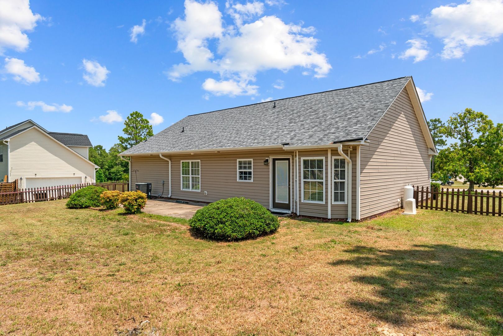 Smart thermostats in the home and USB outlets in every room ensure convenience and efficiency. Outside, a fenced-in backyard awaits, complete with a fire pit for gatherings under the stars.